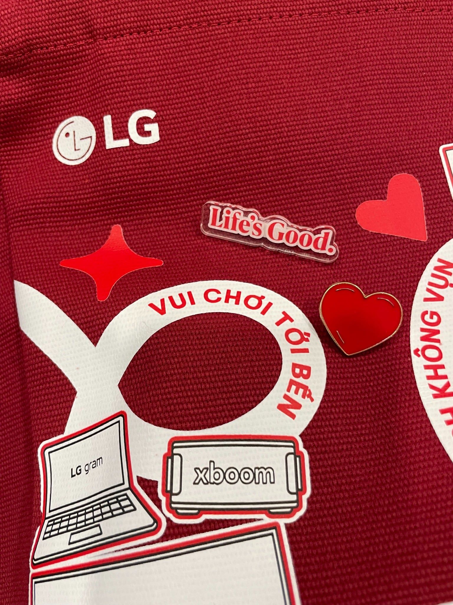 | Mục đích & tiêu chí | - Totebag/crossbag for everyday use fits laptop 13inch - Target audience: GenZ & GenY - Color: red (branding of LG) - Playful interaction with the bag - DIY Workshop - Packaging: eco-friendly, gifting, promote the campaign |