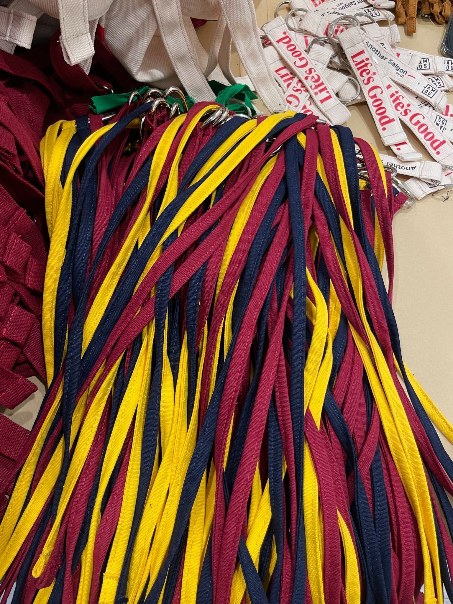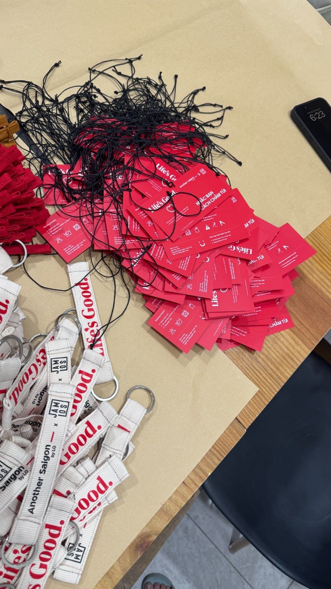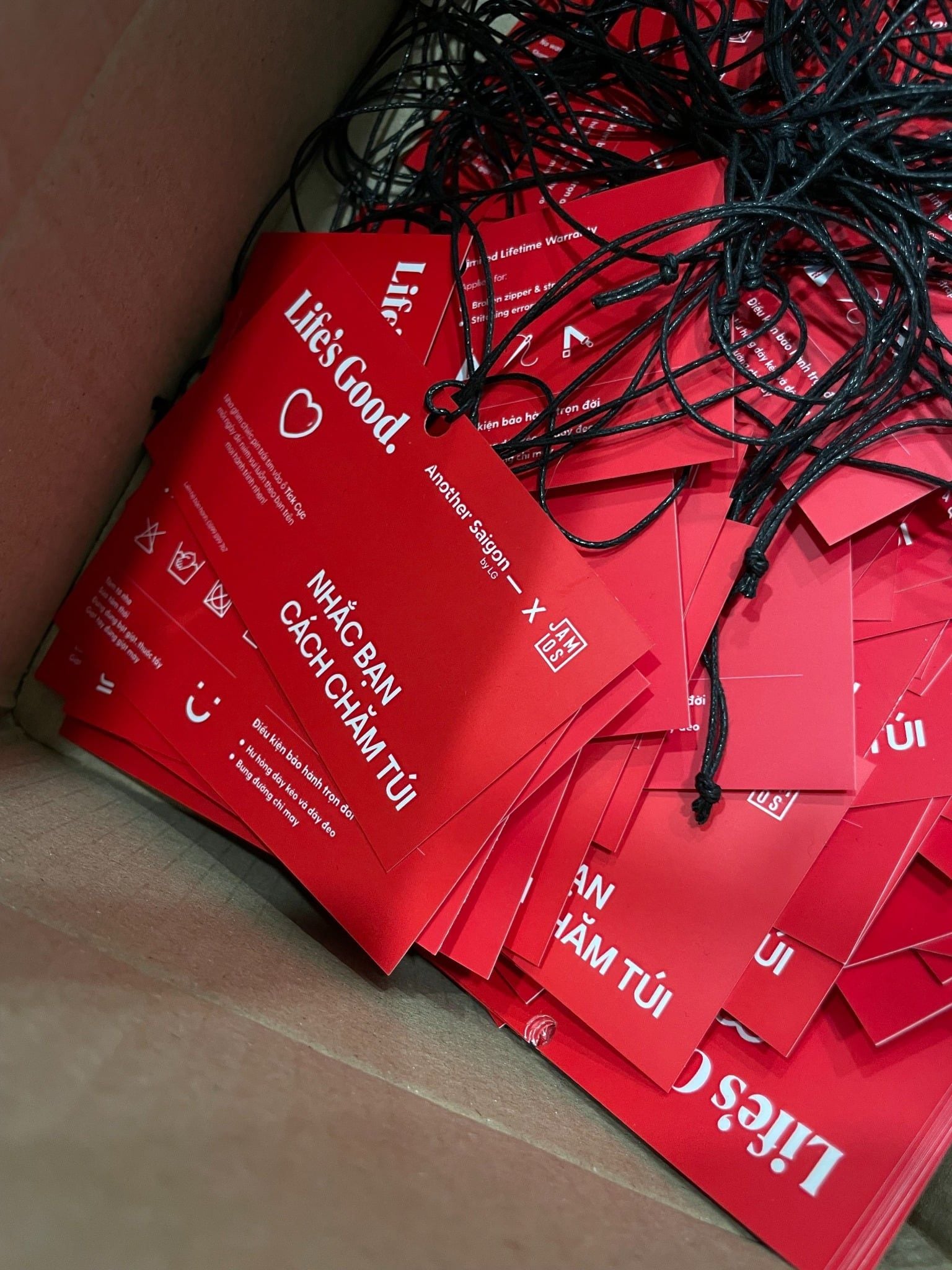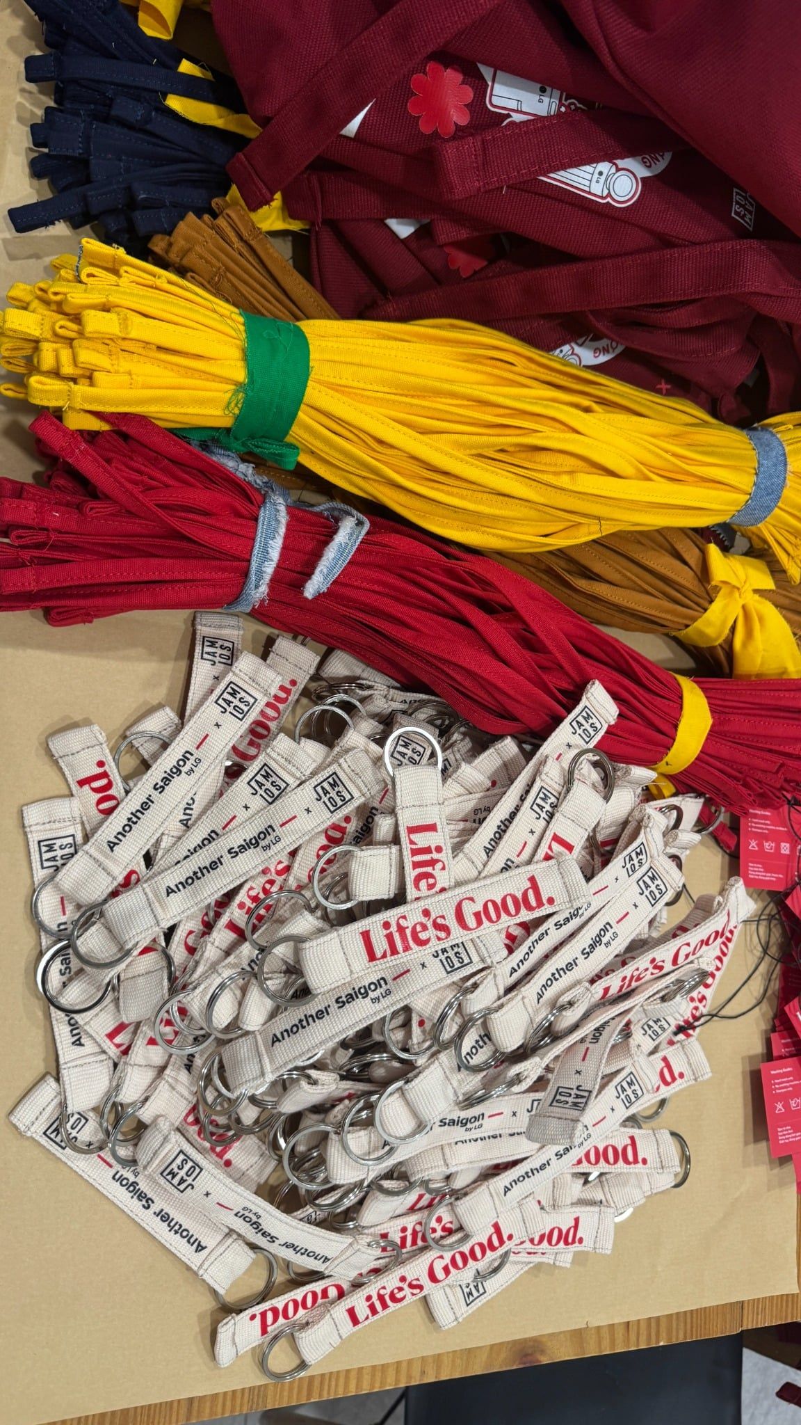 | Phương án | - Cross A Food is 2in1 bag with the adjustable straps for tote or crossbag. - Finalized 2 colors of the bag: Cream printing red content & Wine printing white content - Making the pins to interact and personalize on the bag: heart pin & Life's Good pin. When customers could pin anywhere in the artwork presenting the journey of the campaign. - DIY Workshop: the demo product of Jamlos launching soon in 2026, the DIY tie the canvas keychain charm with 2 combos of color and attaching with the canvas logo tag keychain. - Packaging: after packing the orginal papercraft of Jamlos, then wrapping the campaign print around the body of the paperbag to showcase the information & KV. - Customized the Jamlos Customer Note with LG red color & the message on the tag. |