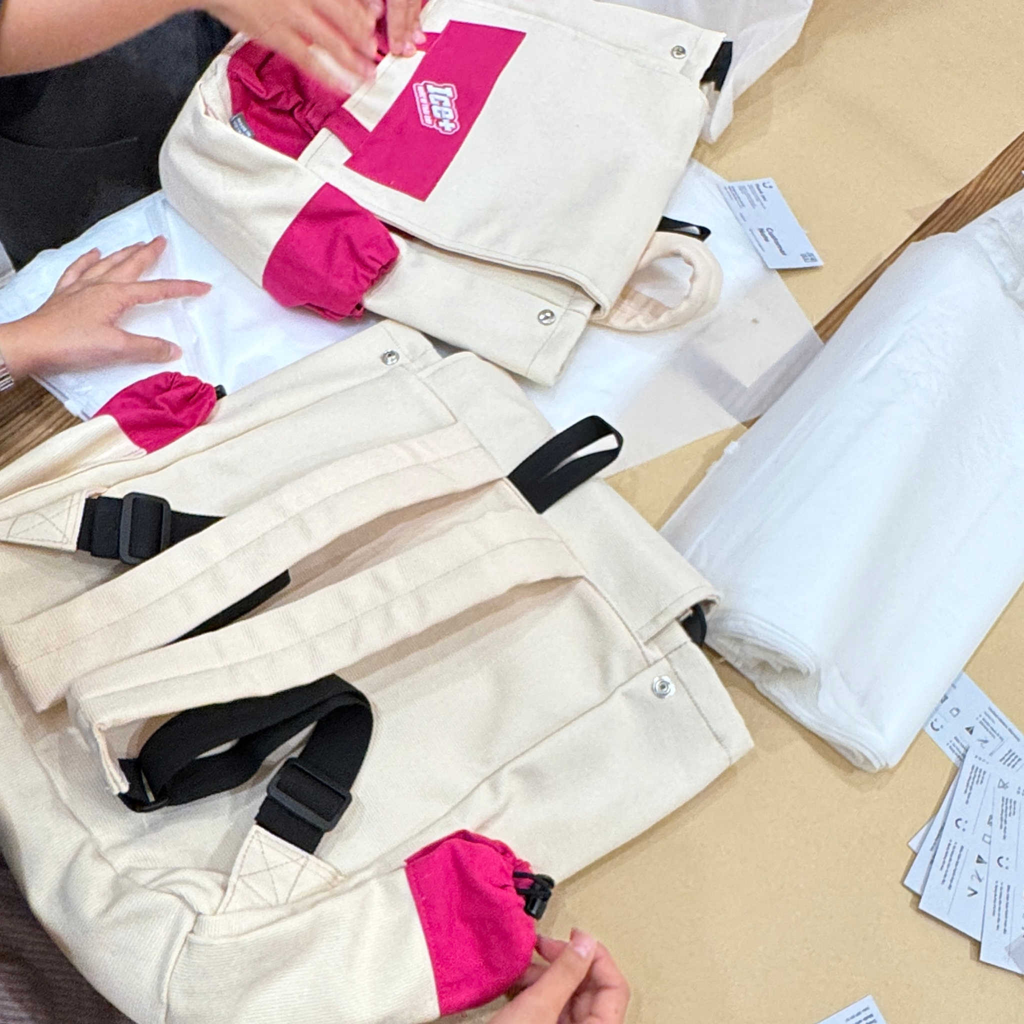 | Solution | - Brand Identify của Ice+ với Logo Ice+ hồng. - Balance màu sắc của balo với màu branding để phù hợp cho cả nam & nữ có thể sử dụng hằng ngày và tăng độ nhận diện của brand. - Thiết kế thay đổi 2 ngăn túi 2 bên hông, từ túi nắp hộp thành 2 ngăn túi dây rút đựng bình nước. - 2 phối màu dành cho nam & nữ: + Navy-Cream-Pink: với màu xanh navy chủ đạo mạnh mẽ, kết hợp cùng các ngăn túi hộp màu hồng của Ice+ và phần nắp túi màu kem cân bằng lại tổng thể độ contrast của xanh đậm và hồng tươi. + Cream-Pink: với màu kem cream chủ đạo nhẹ nhàng, kết hợp dùng màu hồng ở các túi hộp và túi hông, điểm thêm phần chi tiết nhỏ trên nắp túi kem, hài hoà màu sắc ở các bộ phận khác nhau trên túi. - Sản phẩm co-branding, có kèm label logo Jamlos dưới dạng nhãn dệt xám kẹp bên hông và có nhãn giặt xuất xứ bên trong từng sản phẩm. - Bao bì: túi zip lụa mờ, có kèm tag bảo hành trọn đời của Jamlos đi kèm từng sản phẩm. |