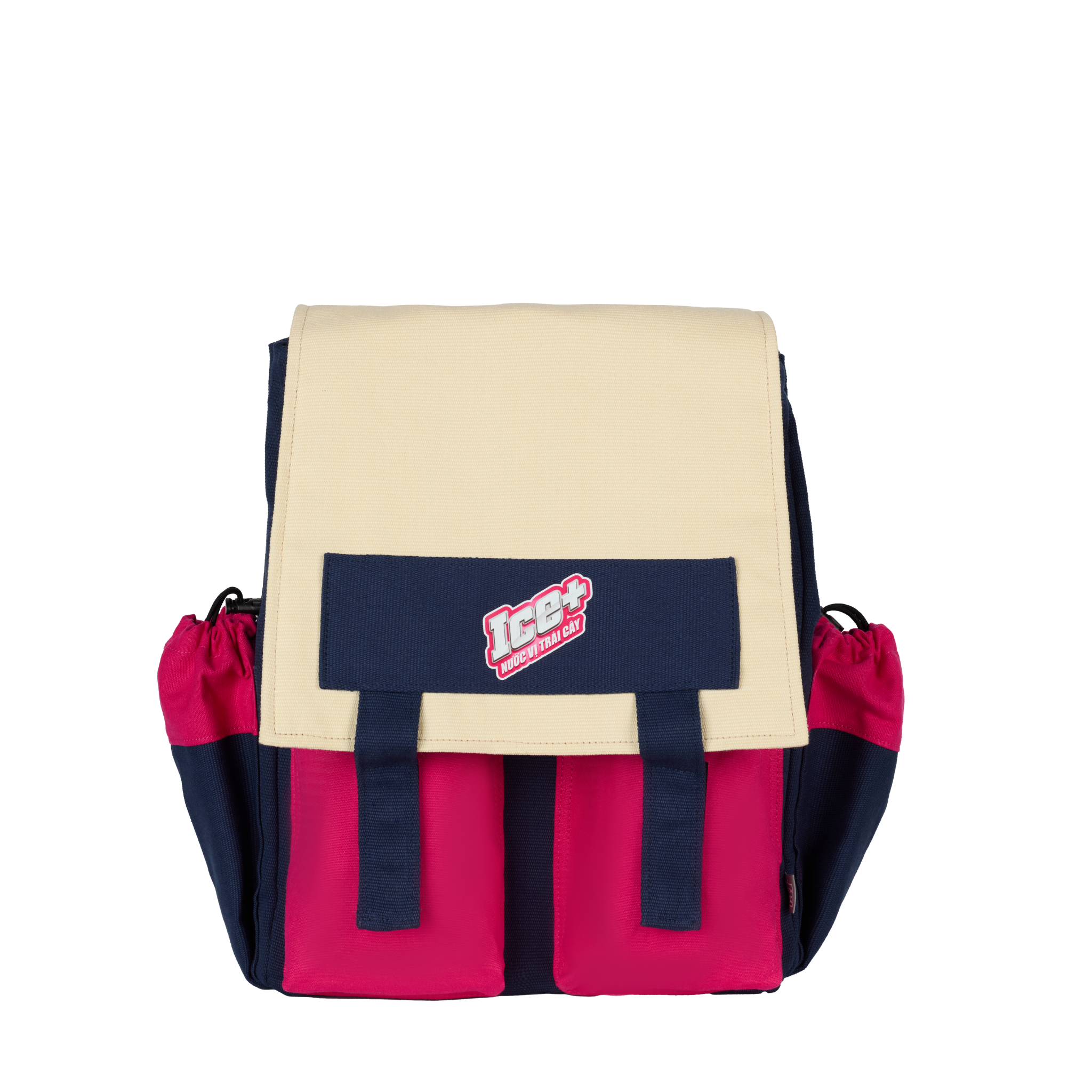 Thiết kế nổi bật với 2 phiên bản màu sắc cá tính: Navy-Cream-Pink và Cream-Pink, phù hợp cả nam lẫn nữ. Chất liệu canvas bền chắc, ngăn đựng nước tiện lợi, logo Ice+ được thể hiện khéo léo vừa đủ nhận diện thương hiệu mà vẫn thời trang. Đây là mẫu balo quà tặng Ice+ Kirin lý tưởng cho các chương trình co-branding hấp dẫn.