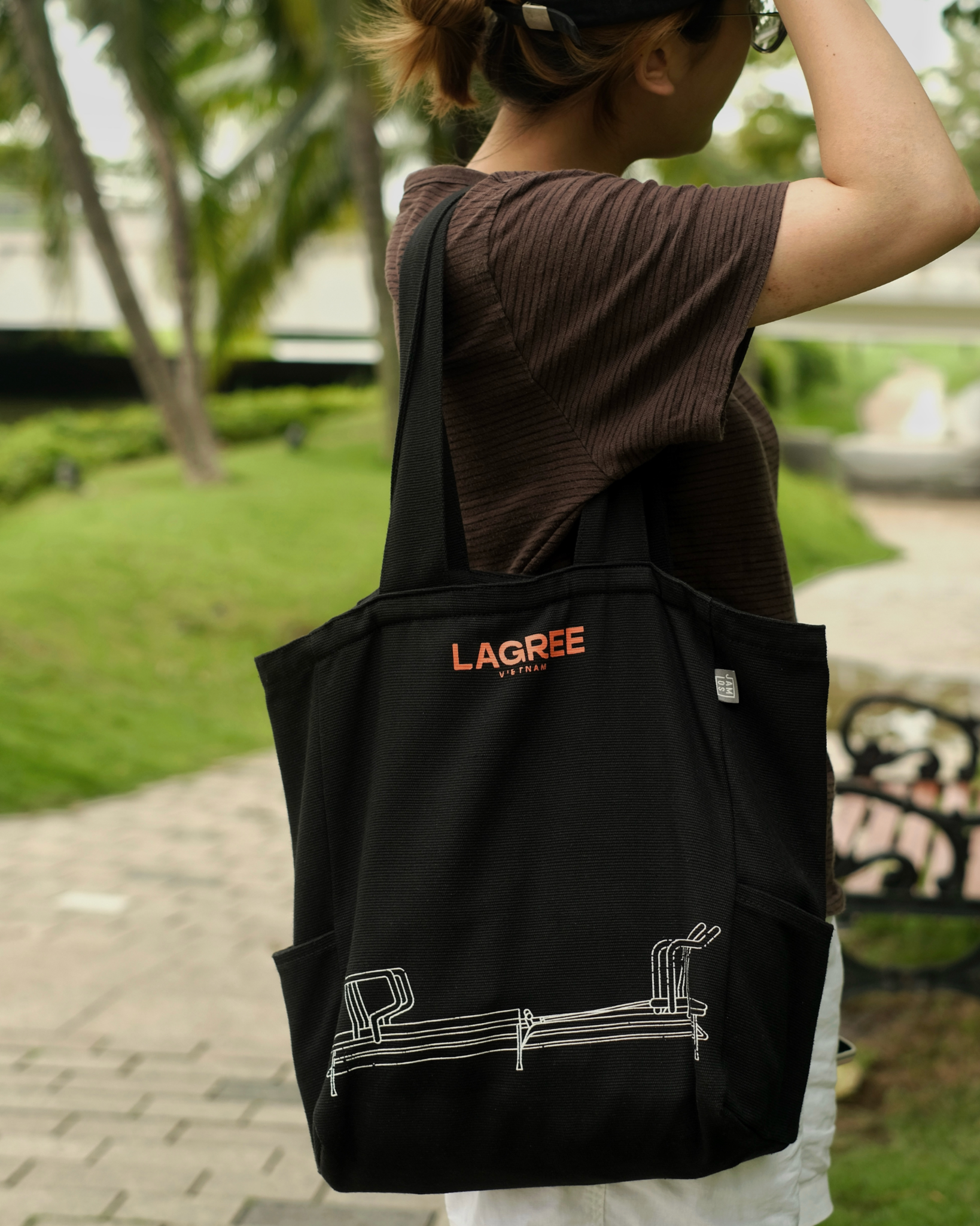 Túi tote Lagree là phiên bản giới hạn được Jamlos thiết kế riêng cho Lagree Vietnam – Studio Lagree chính thức đầu tiên và duy nhất tại Việt Nam. Lấy cảm hứng từ tinh thần “high-intensity, low-impact” đặc trưng của bộ môn, chiếc túi mang sắc đen – cam khỏe khoắn, phù hợp với phong cách năng động của người yêu luyện tập.