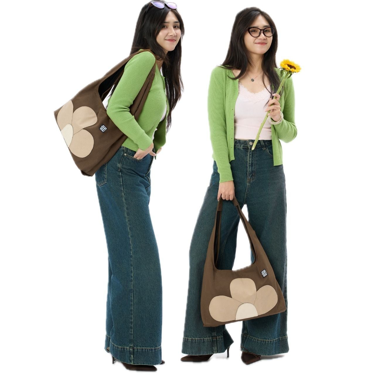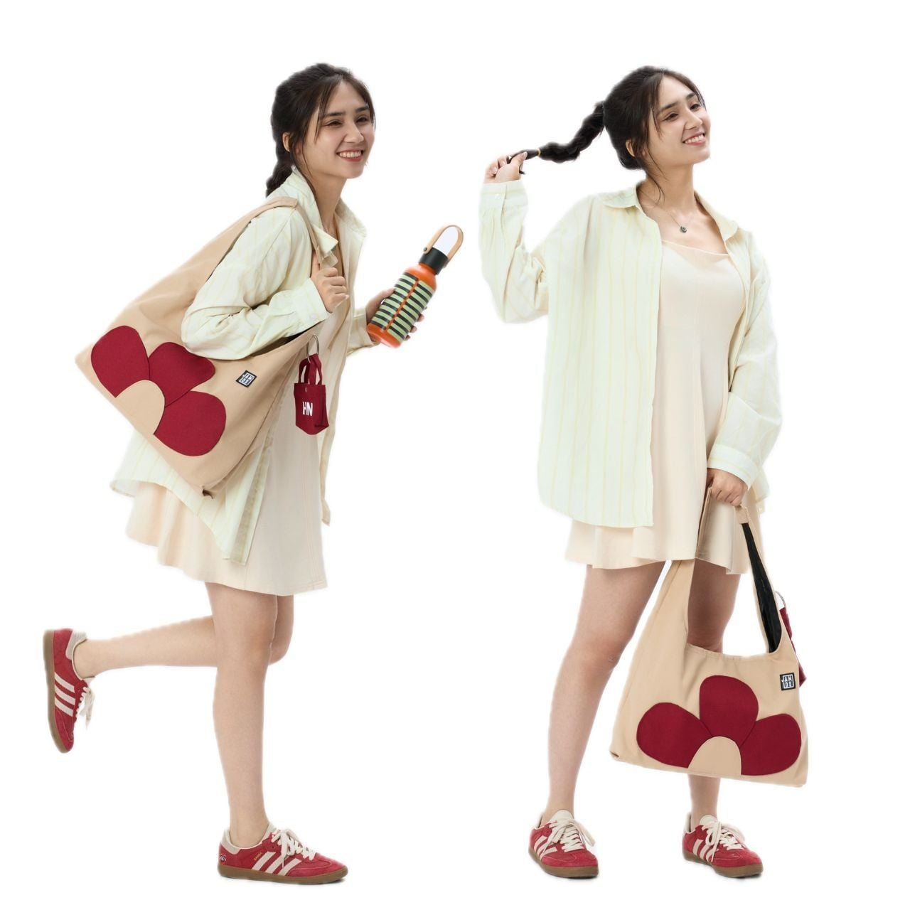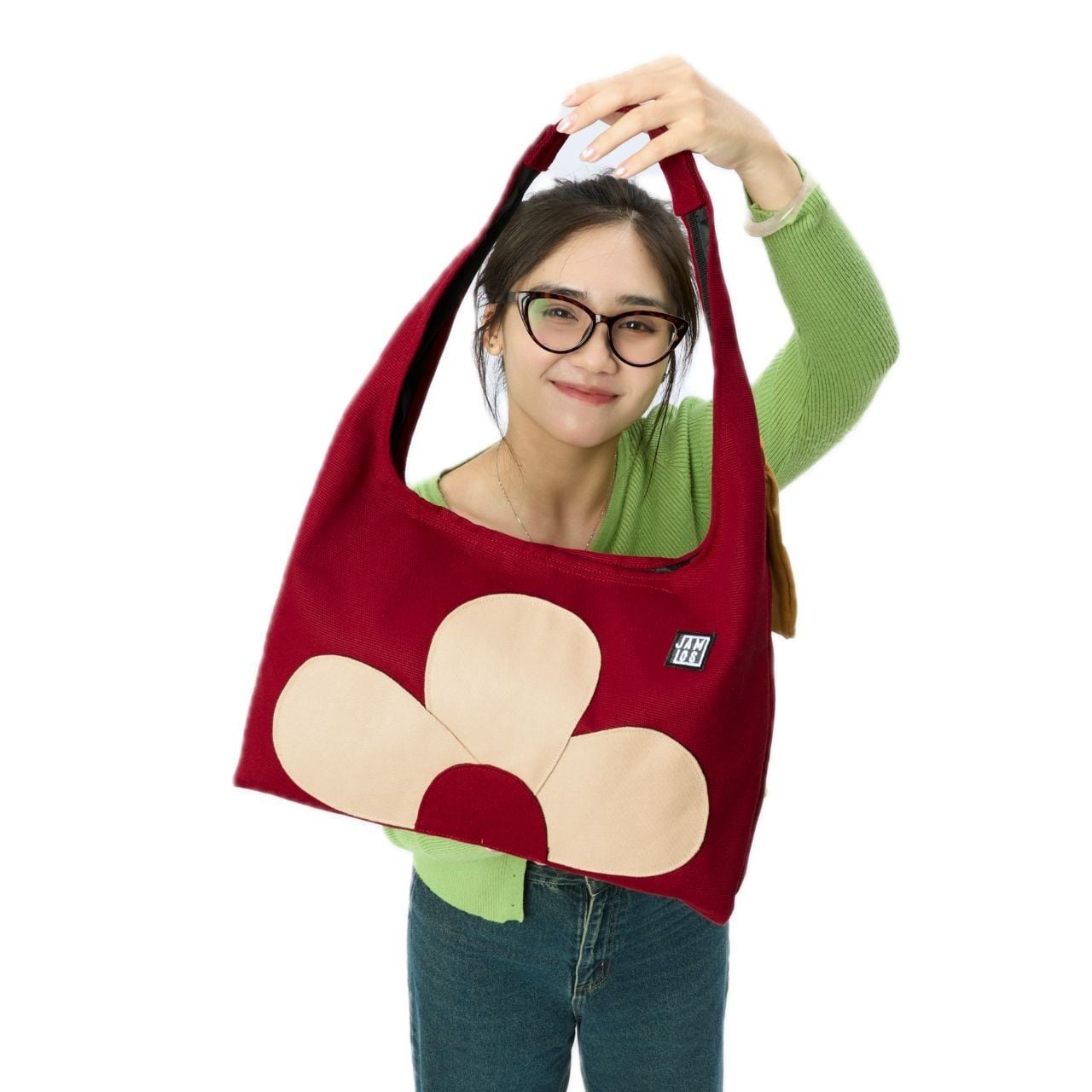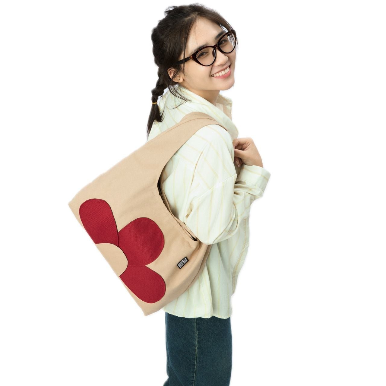 - Túi vải canvas tạo hình những cánh hoa bên ngoài túi.