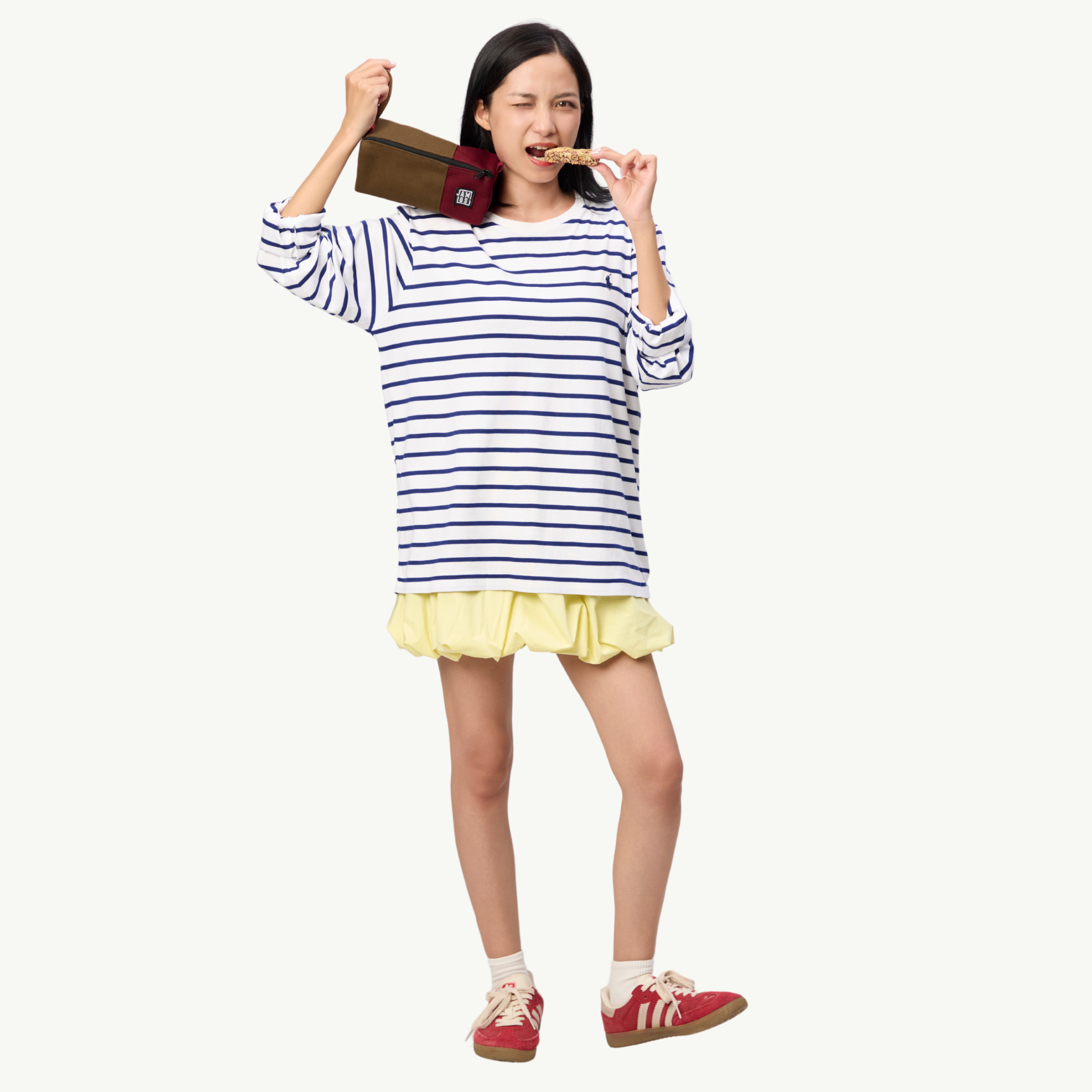 Bóp viết Nuts Bar Pencil Case là phiên bản phụ kiện nhỏ gọn mang tinh thần “nhỏ mà có võ” của Jamlos. Lấy cảm hứng từ những thanh ngũ cốc năng lượng quen thuộc, chiếc bóp viết đại diện cho những điều bé xíu nhưng đủ sức tiếp năng lượng cho cả ngày học tập, làm việc hay rong chơi. Từng đường nét đơn giản nhưng vui nhộn, giống như một trò chơi xếp hình quen thuộc, giúp nhịp sống thường ngày trở nên nhẹ nhàng và thú vị hơn.