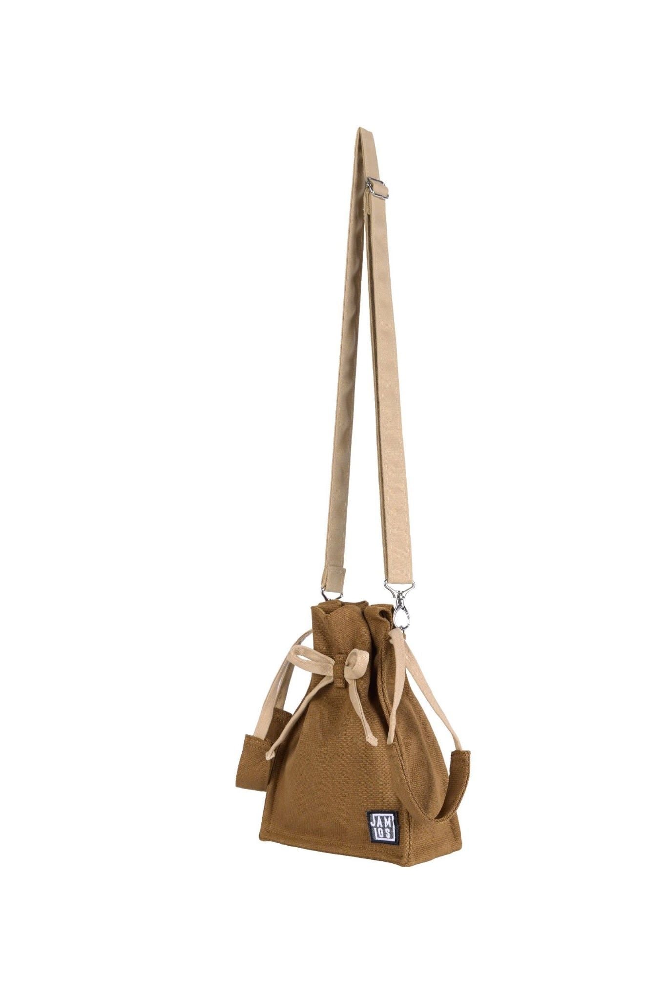 Túi đeo chéo mini Giftbag Bucket của Jamlos được thiết kế như một chiếc túi gói quà thu nhỏ, mang cảm giác ấm áp và thân quen của những dịp lễ hội. Dáng túi chữ nhật nhỏ gọn, phần hông nở nhẹ và được gấp khéo léo như gói bánh, tạo nên điểm nhấn tinh tế ngay từ cái nhìn đầu tiên. Chất liệu canvas bền chắc giúp túi giữ form tốt, phù hợp để sử dụng lâu dài.