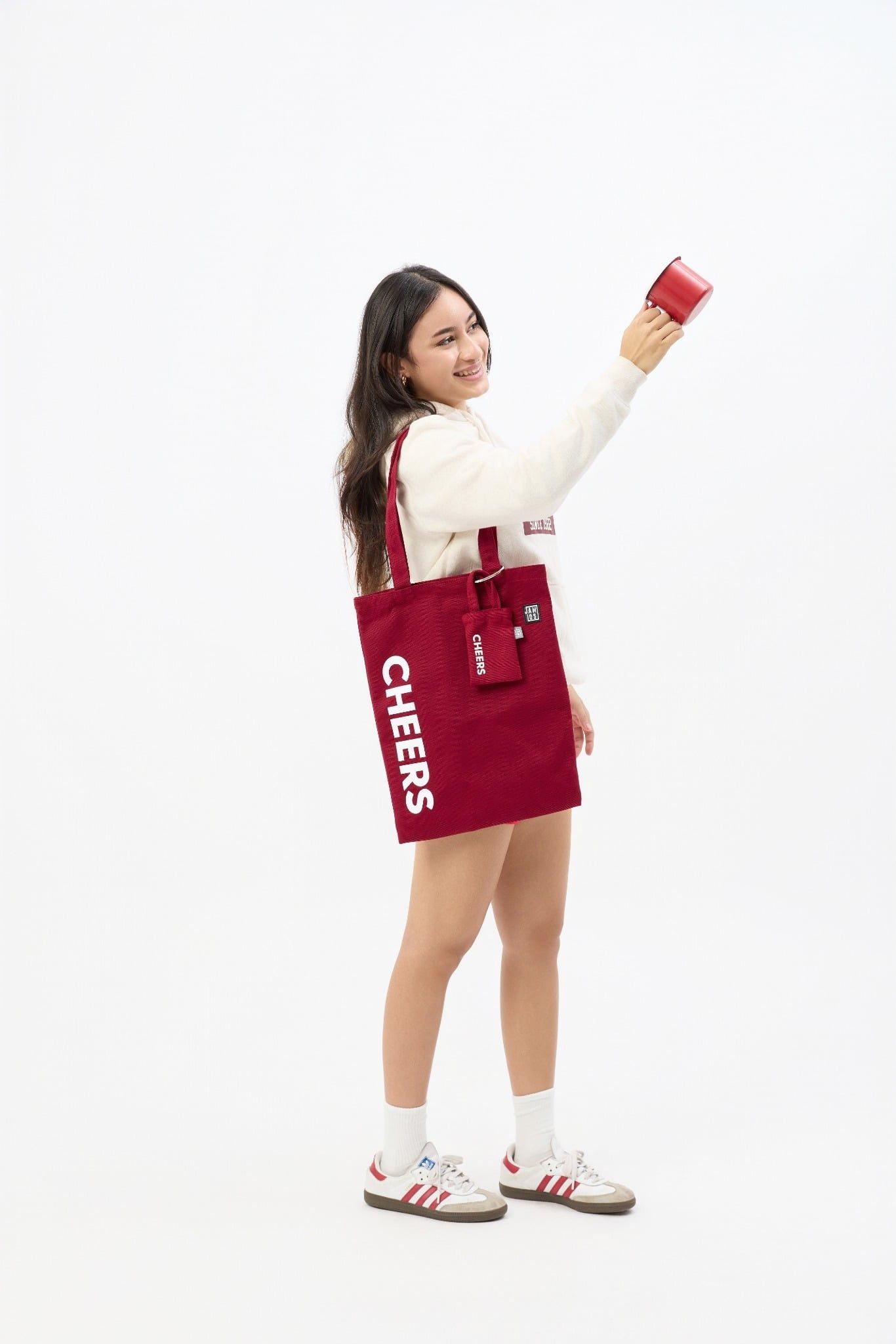 - Được tặng kèm móc oval inox làm charm treo vừa quai túi.