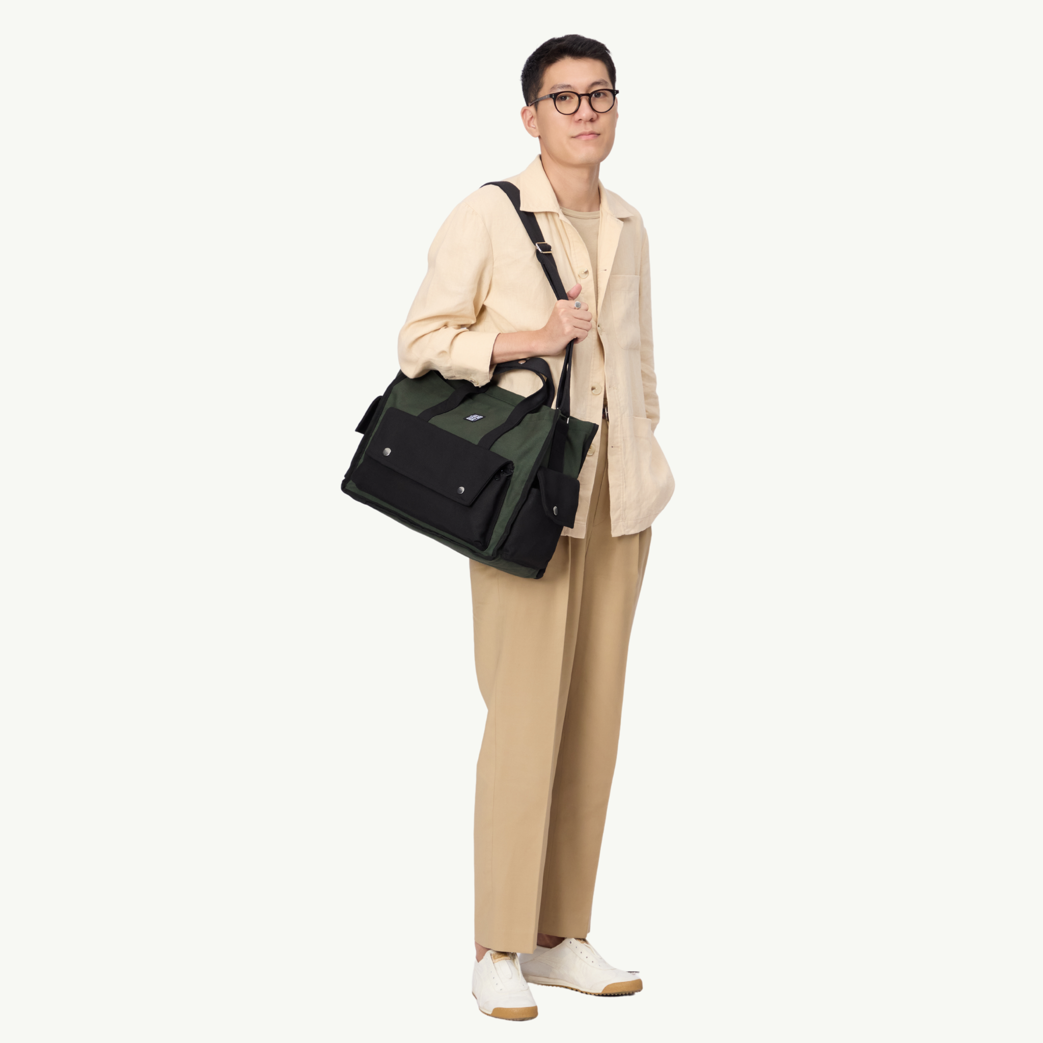 - Dáng túi messenger, có quai xách và quai đeo chéo, dáng chữ nhật thành thị và chắc chắn, cùng nhiều ngăn túi hộp bên ngoài tiện dụng.
