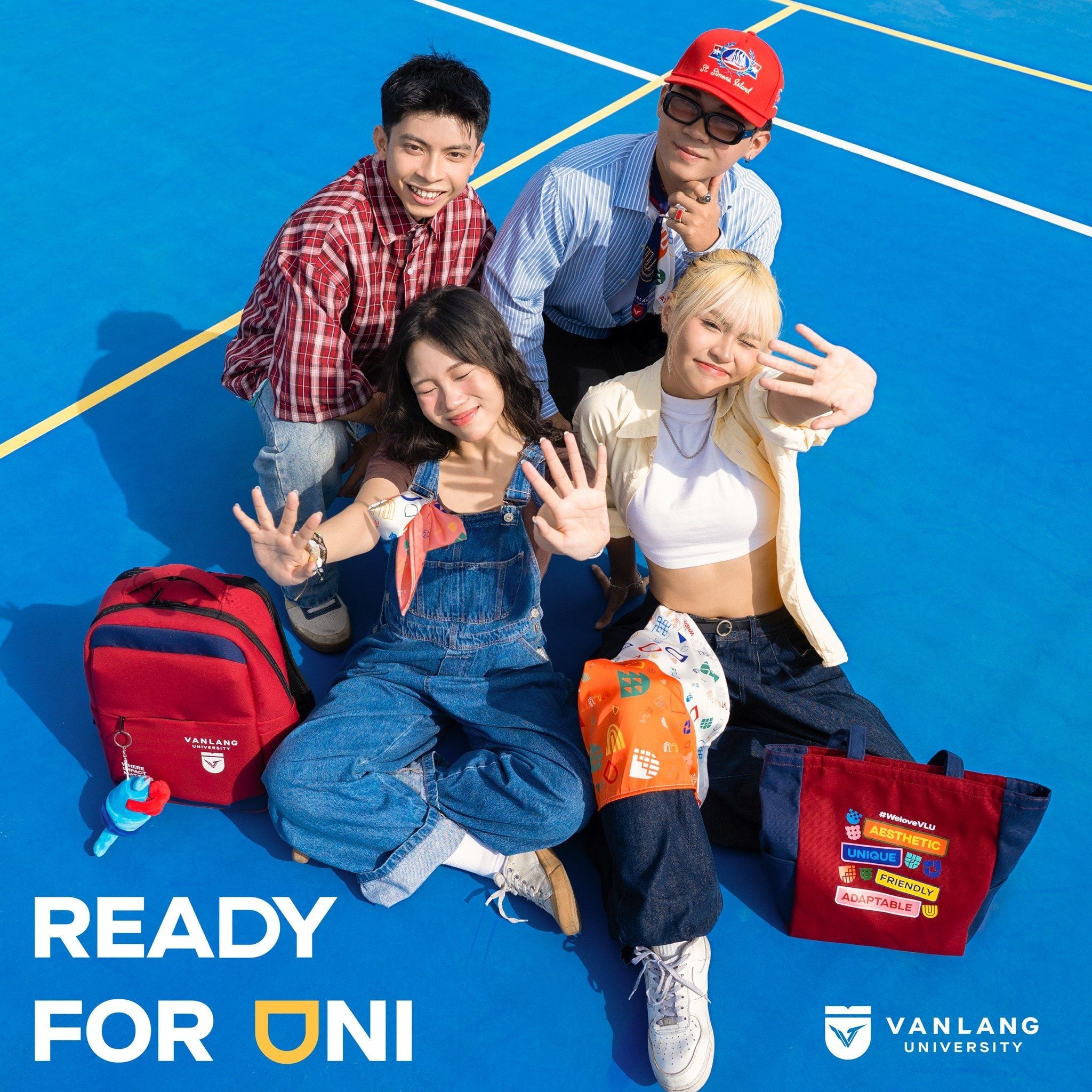 | Goal & requirement | - Lựa chọn trên phom dáng túi tote best seller của Jamlos - Dựa trên màu sắc nhận diện thương hiệu Văn Lang là đỏ & xanh dương đậm - Dáng túi năng động, trẻ trung - Có thể treo thêm khăn turban và charm gấu bông mascot của Văn Lang bên ngoài túi - In ấn cả 2 mặt túi, một mặt thương hiệu, một mặt có các messages & keywords. |